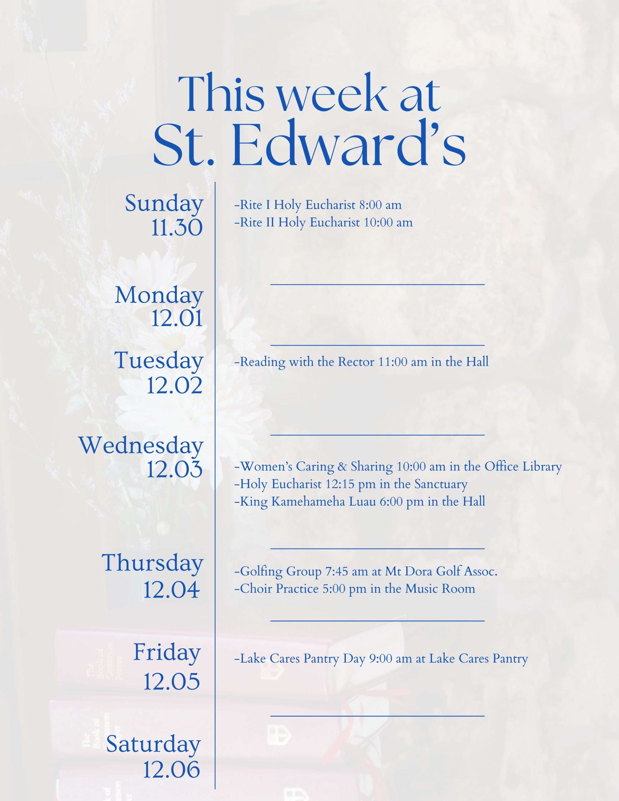 - Mail a check to the office at: St. Edward’s Episcopal Church, 460 N Grandview St., Mount Dora, FL 32757