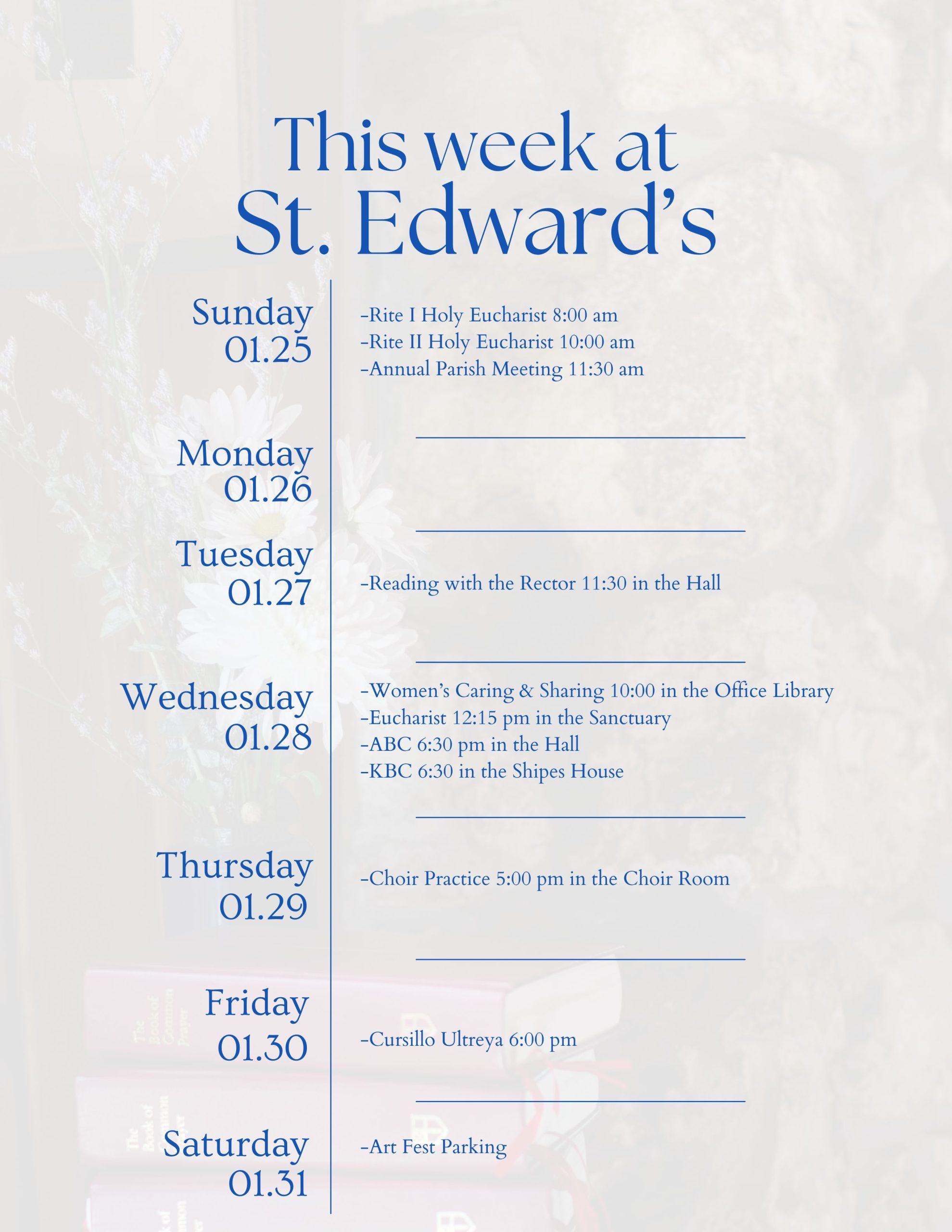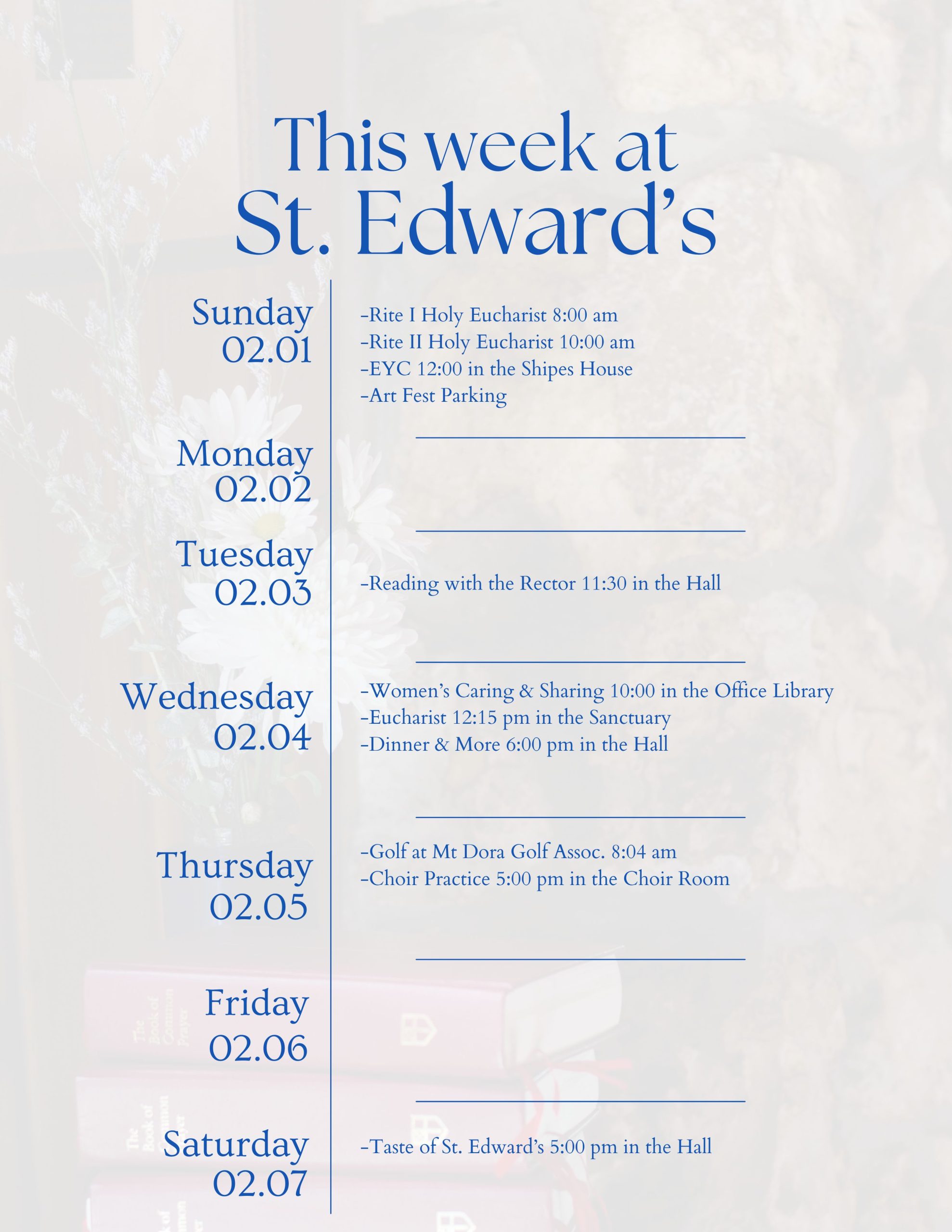 - Mail a check to the office at: St. Edward’s Episcopal Church, 460 N Grandview St., Mount Dora, FL 32757