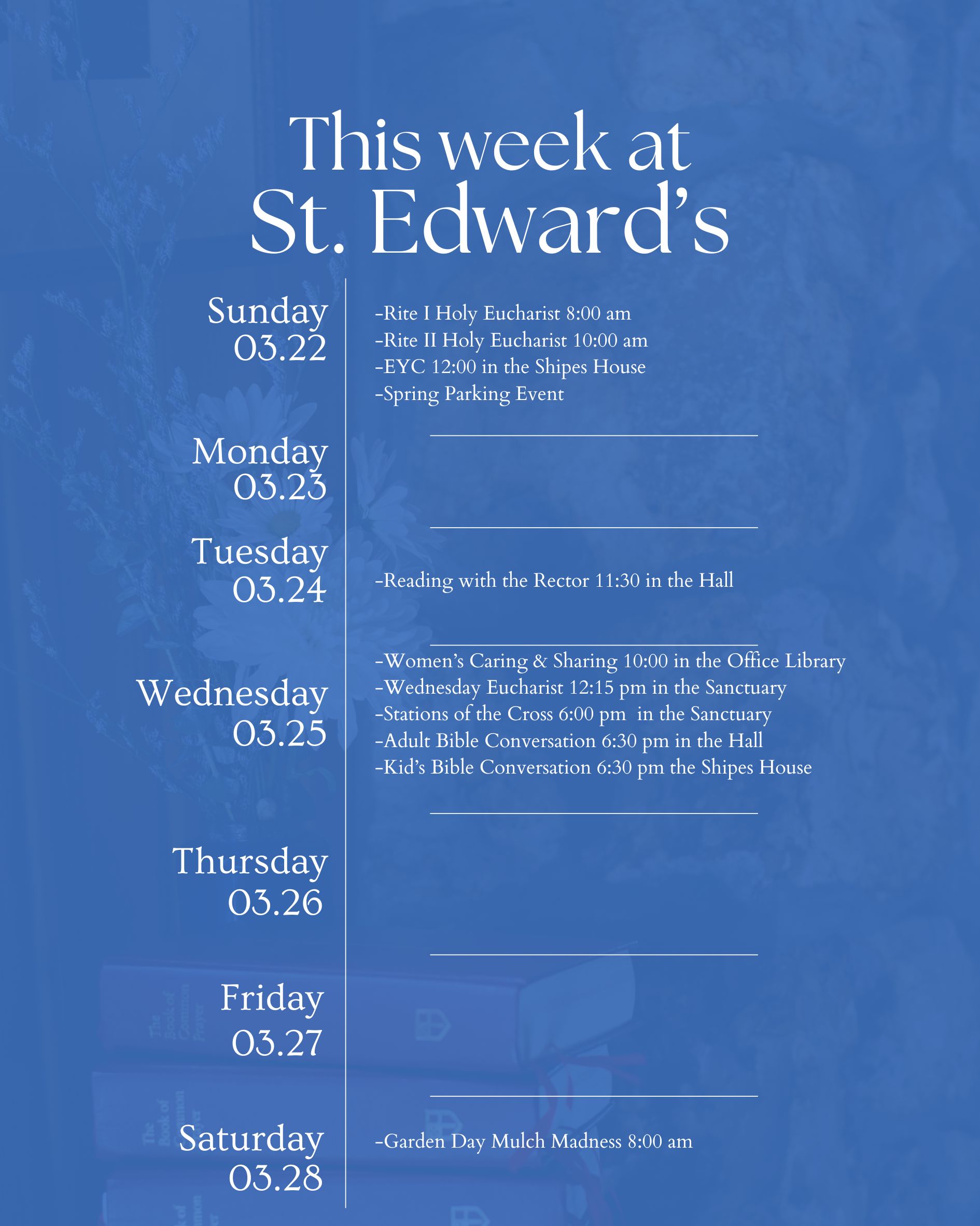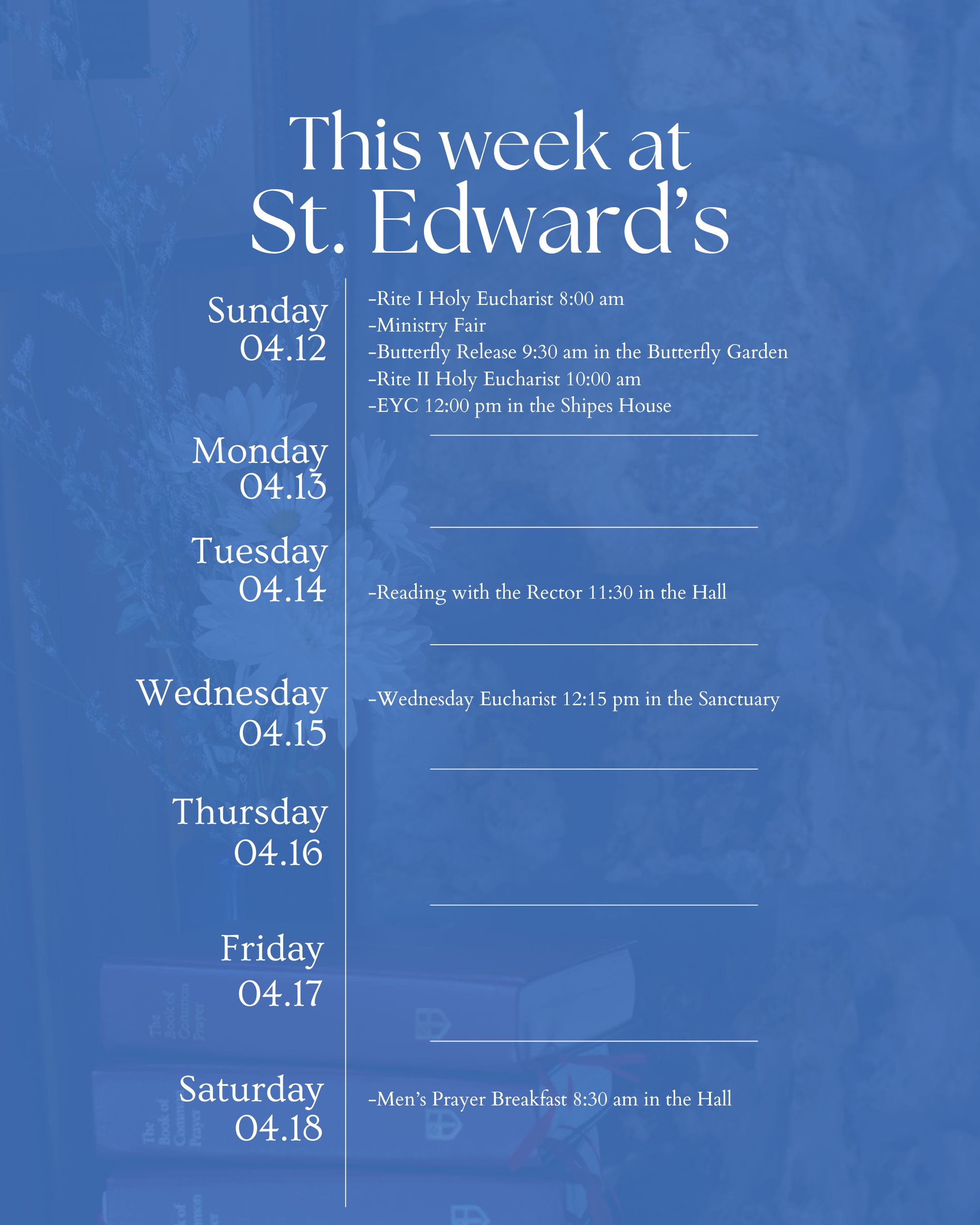 ","location":[{"@type":"Place","name":"St. Edward's Episcopal Church","address":{"@type": "PostalAddress","streetAddress":"460 N. Grandview Street"}}],"eventStatus":"https://schema.org/EventScheduled"}